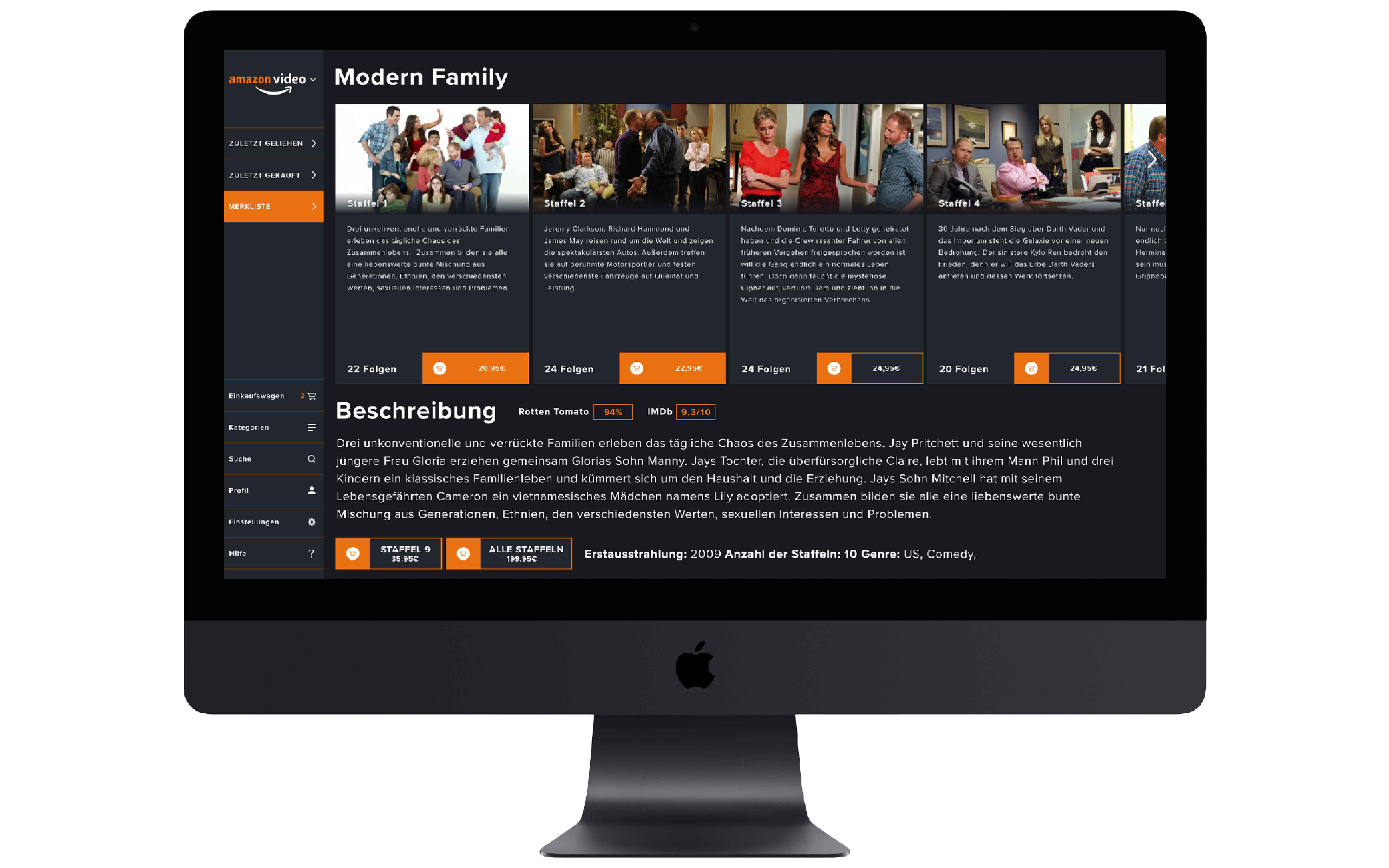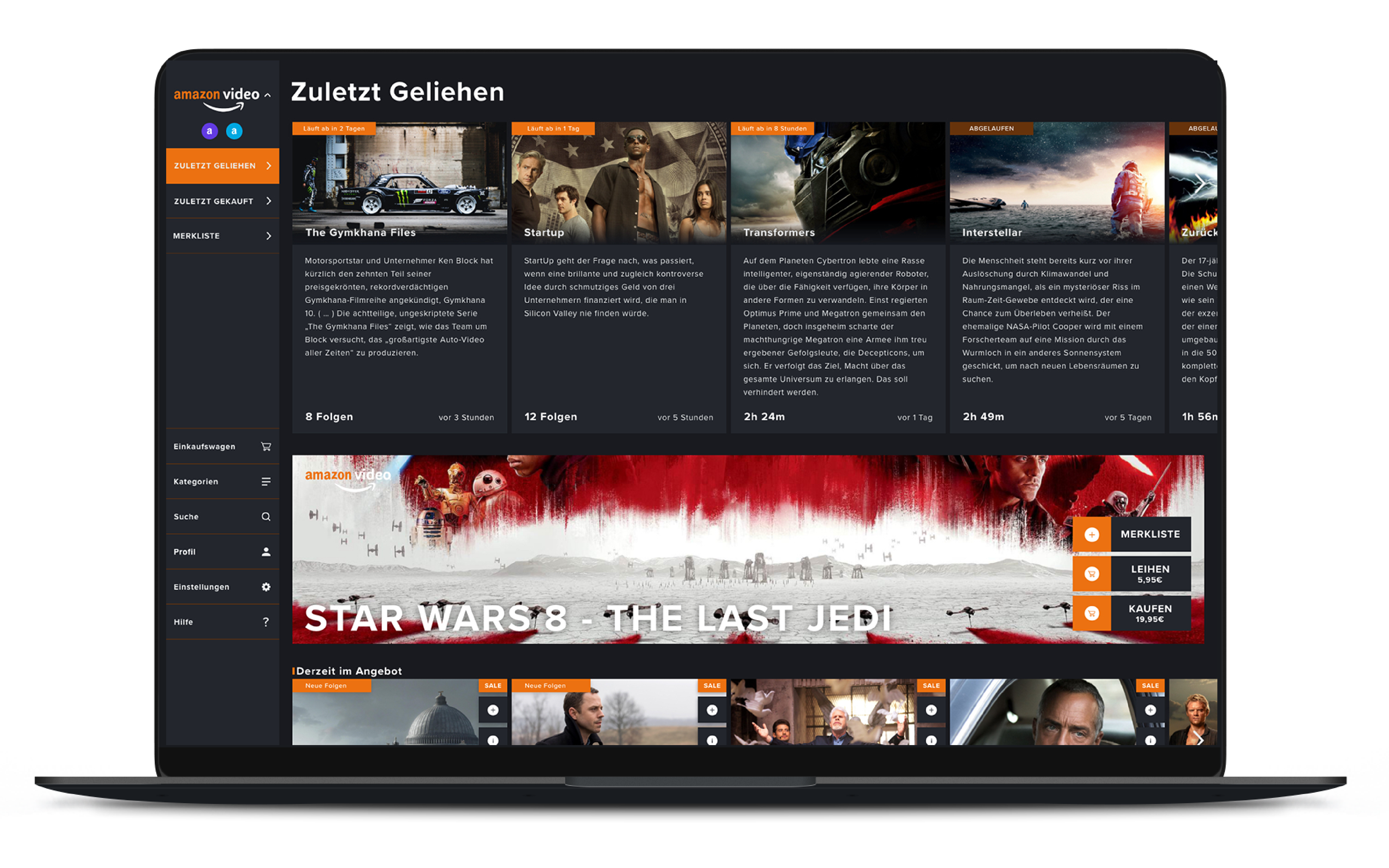 Amazon Video ist der Bereich in dem die Inhalte gekauft oder geliehen werden können. Der Wechsel zwischen den Bereichen ist einfach und Benutzerfreundlich gestaltet.