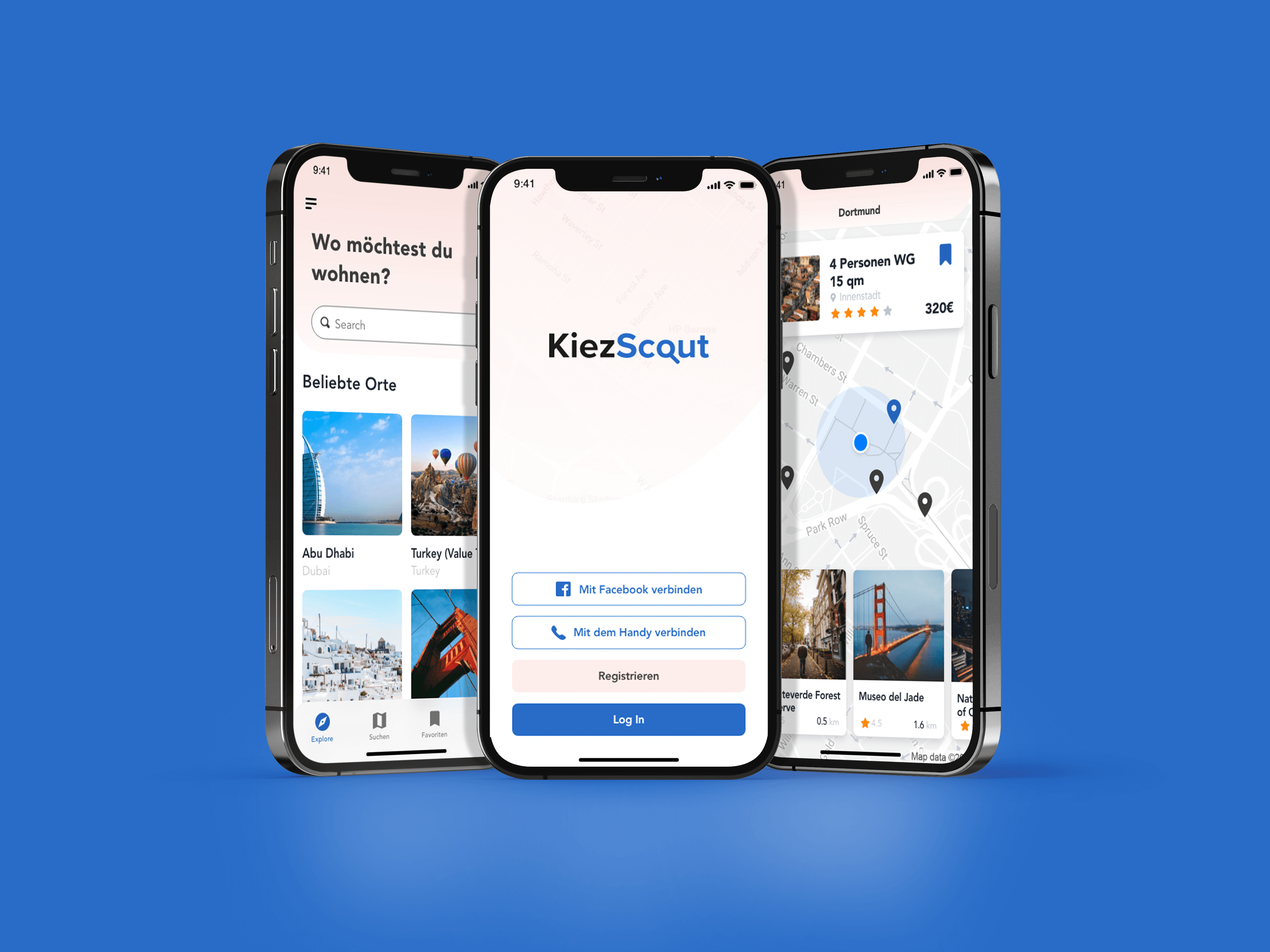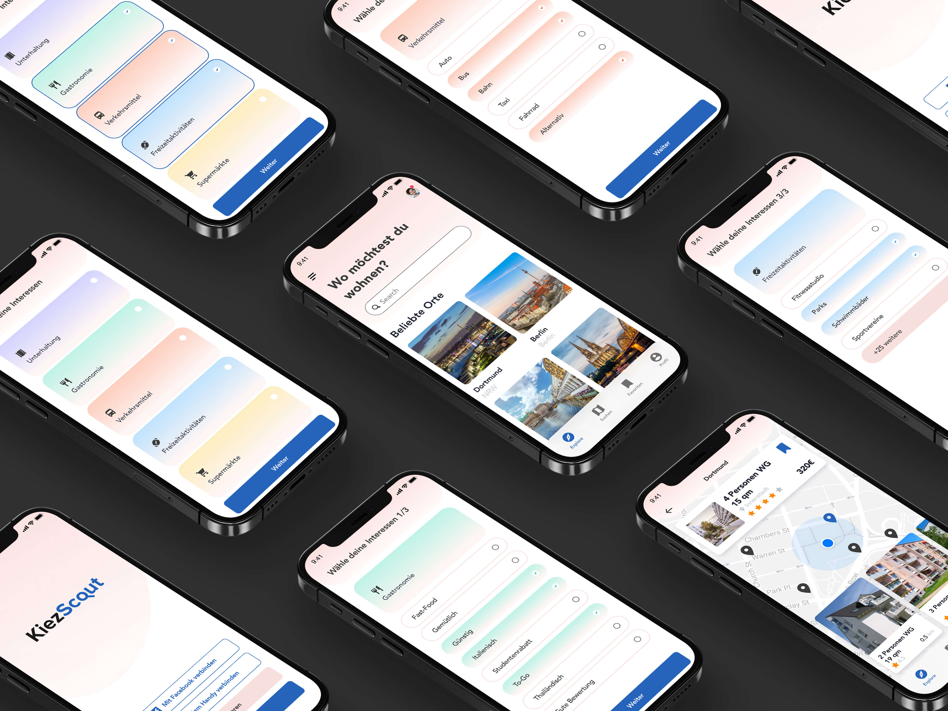KiezScout ist eine Hilfe für jeden, der eine Wohnung sucht und anhand seiner Interessen in der richtigen Umgebung wohnen möchte. Wir haben die Brand Identity, sowie die App und dessen Funktionen von KiezScout gestaltet. Das Logo ist schlicht und einleuchtend. Da es sich um eine Suchmaschine handelt, haben wir das "o" zu einer Lupe entwickelt. Das Farbschema ist ein modernes und leichtes Thema, welches nicht ablenkt, aber einen hohen Wiedererkennungswert hat.