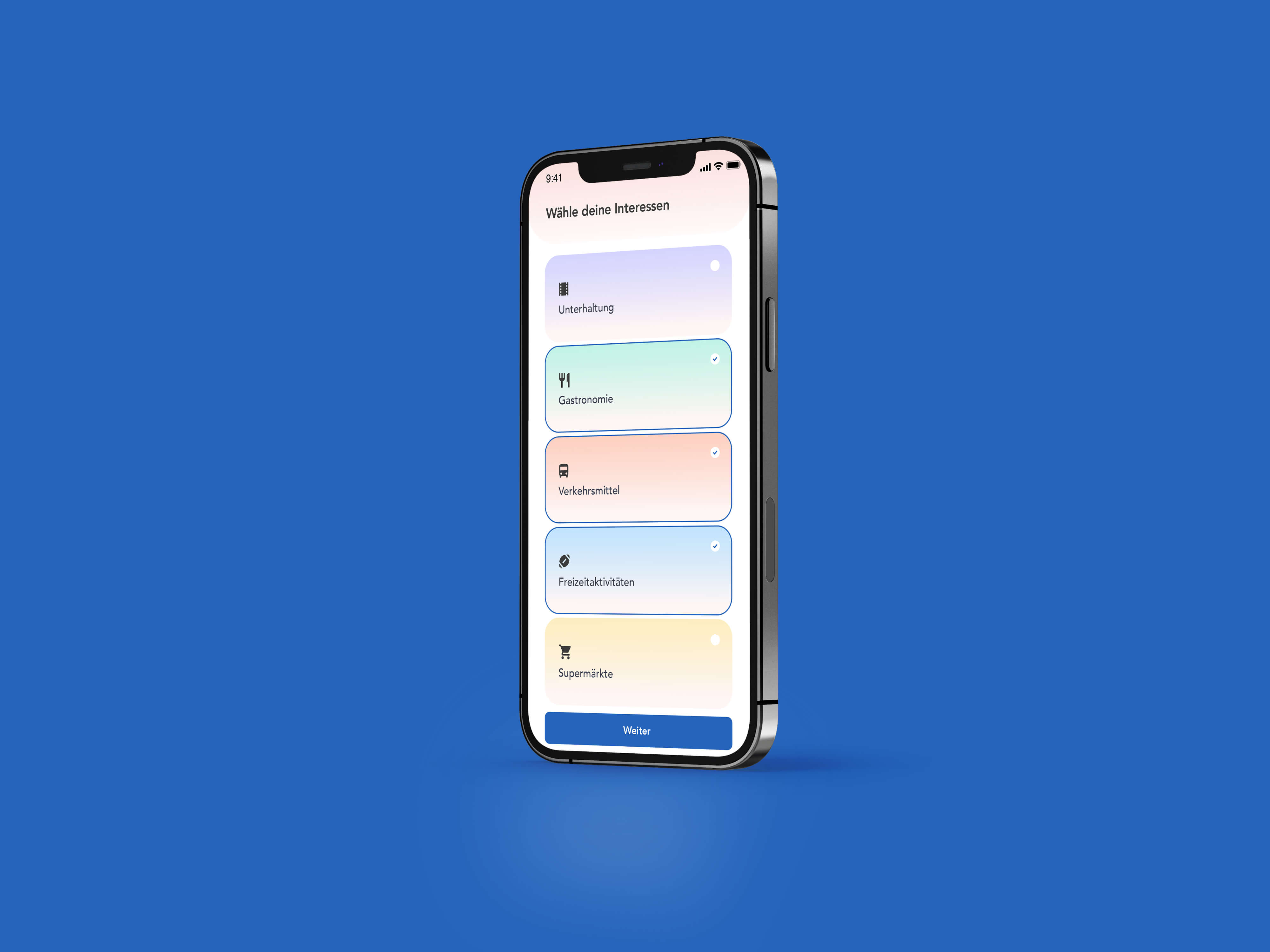 Zunächst meldet man sich an und kann seine Interessen angeben.